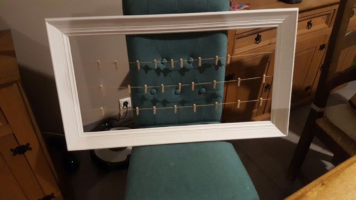 Voilà un vieux cadre customisé pour que nos invités puisse accroche leur photo Polaroïd au fur et à mesure