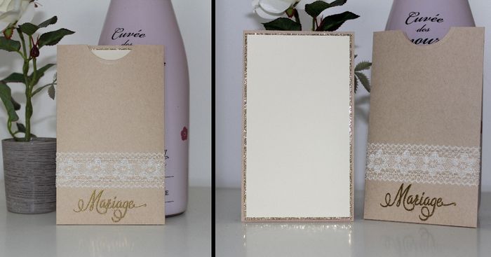Faire-part terminés depuis hier soir ! ouf... depuis le temps que je les ai commencés. Ce sont les faire-part pour les personnes invitées au repas. Ceux de droite seront les faire-part pour les invités au vin d'honneur mais j'ai encore le temps pour...