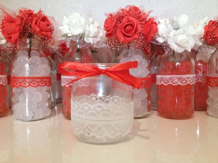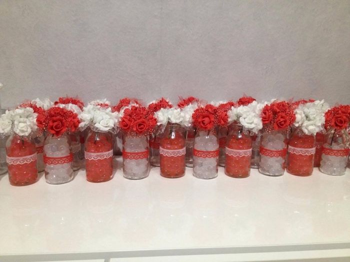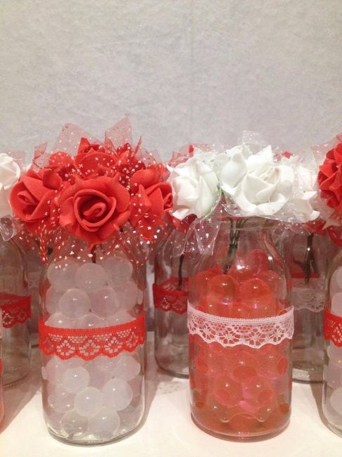 Coucou les filles ,mes perles d eau rouges sont arrivées !! Qu' en pensez vous ? J attends encore les perles blanches ,la dentelle blanche et rouge ,et mes étiquettes cartonnees + notre tampon fais sur mesure pour finir mes fioles :-)