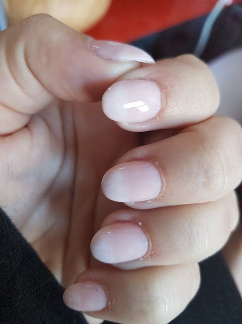 Hier, a j-3, belle maman m'a offert la pose de capsule et de gel pour le jour j, et voila le resultat! Ca ne se voit pas bien sur la photo mais il y a un leger degradé