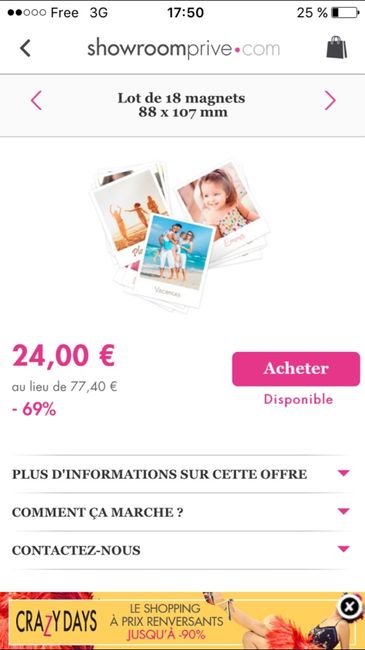 Coucou les futurs mariés et futures mariées.Je voulais faire un save the date aimanté. Pour que tout le monde puisse voir nos faces à mon futur et moi. Et en ce moment il y a une super offre sur showroom.J'ai prit 3 lots de 18 car j'enverrai les save...