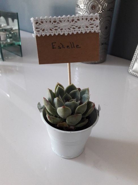 Alors parce qu'il faut bien commencer un jour, voici le résultat final de mes essais rond de serviette et pic marque place qui seront planté dans des pots de succulentes. Trop contente !!