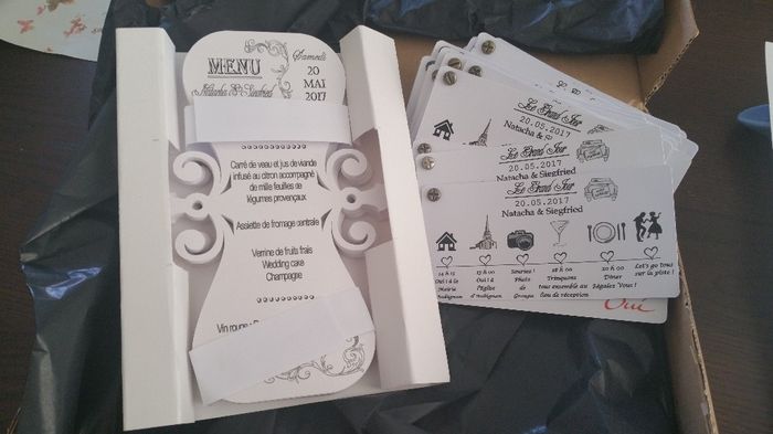 Voici mon colis du jour. Il y a mes noms de tables, le pan de table et l'affiche bienvenue. Je suis trop contente c'est parfait en tout cas à nos yeux. Plan de table Affiche d'entrée. Noms de tables.