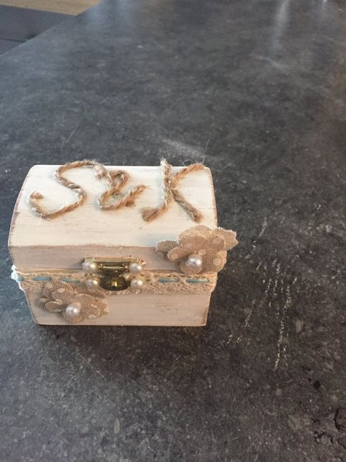 Voici notre boîte à alliances que je viens de finir. Qu'en pensez-vous ?