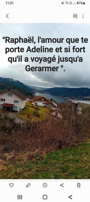 Bonjour, Je me lance.. Je me marie dans un peu moins d'un mois et j'aimerais faire une surprise à mon futur mari le jour du mariage. L'idée serait d'écrire sur un papier "Raphaël, l'amour que te porte Adeline est si fort qu'il a voyagé jusqu'à" et de...