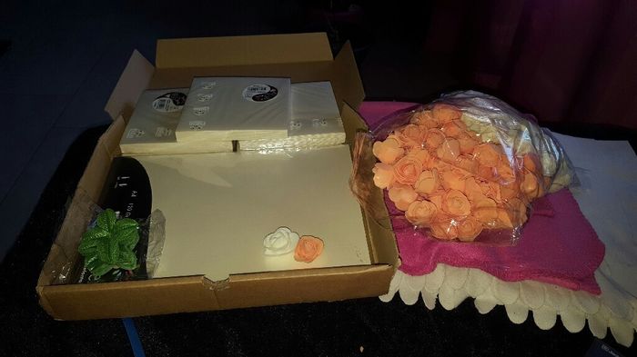 Super excitée !! Ce soir mon voisin frappe à la porte et lorsque je lui ouvre le voilà avec des colis. Mes fleurs pour les boutonnières invités commandées sur ali et mon papier et enveloppes pour mes faires parts commandé sur scrapmalain.Top top top...