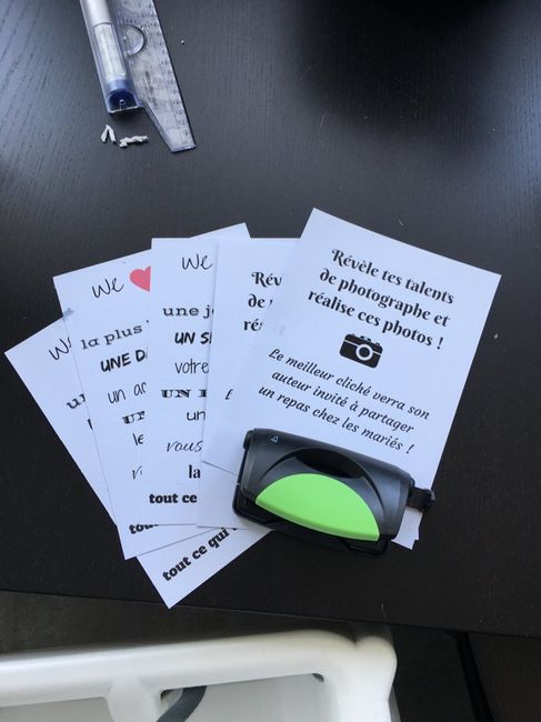 Sans bébé à la maison et avec un chéri motivé, on a énormément avancer ! On a imprimé nos gages pour le jeu de l'ombrelle et installer les numéro sur l'ombrelle, on a fait notre essai de table d'honneur et on a fait les ronds de serviettes ! Journee...