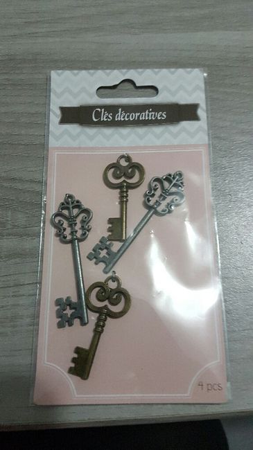 Coucou tout le monde. Voilà la petite trouvaille du jour à la foir'fouille pour 1 euro le paquet de clés décoratives qui viendront sur mes "bocaux " vases accroché par de la corde . Les préparatifs vont pouvoir bientôt débuter!!!