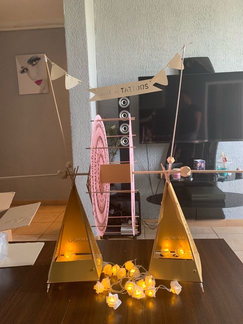 Trop contente nous avons reçu notre bar à tatoos nous l’avons monté pour voir se que sa donne puis remballer pour le mariage j’espère que les invités apprécieront l’animation bonne journée à tous