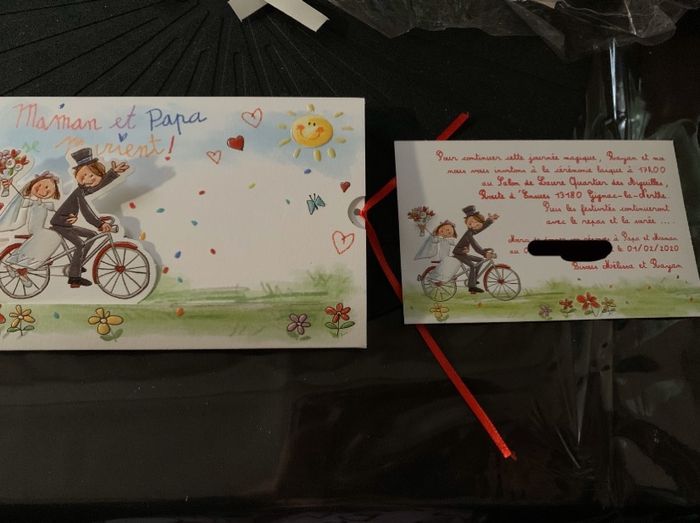 Voici nos faire part choisi par les enfants Ce sont eux qui parle à l’intérieur j’adore et tout le monde me renvoi que du positif
