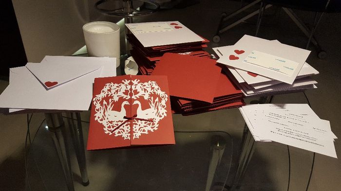 Et voilà, jeudi c'était l'envoie des invitations... Et quel bonheur de recevoir les réponses... Et les félicitations pour ce fameux DIY. Mes amies avaient hâte de les recevoir... moi j'avais hâte qu'ils partent... On attend la suite des réponses...