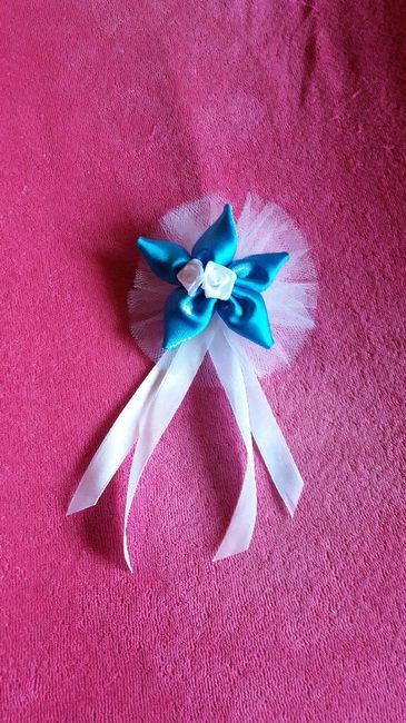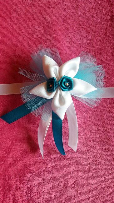 Voici mon 1er bracelet qui sera porté par mes 2 filles. Ma maman et belle maman et les 3 témoins. Pour les hommes les couleurs seront inversé et se portera avec une épingle au costume. Je vais bientôt essayer d en fini un pour montrer le résultat...
