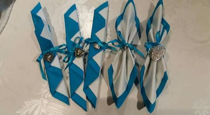 Voilà un 1er essai déco de table. Serviette pliée et décorée d une breloques coeur. Petit vase ou seront piqué des roses. Chemin table, bougies. Manque les menu et les noms de table. C'est un peu pauvres non 😕