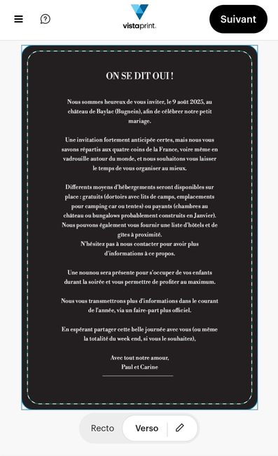 Coucou ! J'ai réalisé mon Save the Date grâce à Vistaprint. Comment le trouvez vous ? Je prends tous les conseils pour l'améliorer 😁. (Cela reste un Save the date et non un Faire part d'où le peu d'informations) Je précise que les écritures au recto...