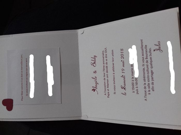 Voici nos faire part. La seul chose qui change sur ceux que nous avons envoyés c'est la partie rajoutée qui a été imprimée sur un beau papier... La c'est un test sur une feuille basique et petites fautes corrigées. .....