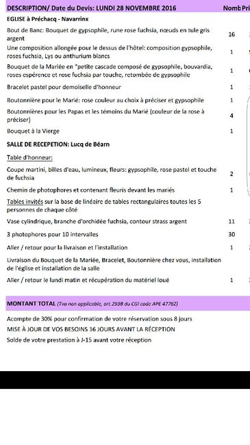 Coucou les filles ! Voilà j'ai contacté une personne pour le moment pour les fleurs pour notre mariage. J'ai eu donc un premier devis. Je voulais savoir si ce n'est pas indiscret pour combien vous en aviez eu ou vous en aurez (pour les futures...