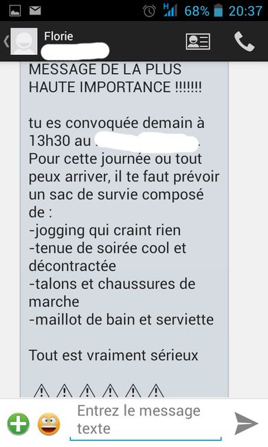 Coucou les Girls & Boys !! J'ai reçu mes instructions hier de ma DH pour mon EVJF et je dois dire j'ai peur car maillot de bain ça craint je ne sais pas nager lol Je lui ai dit elle m'a donc répondu "normalement tu ne devrais pas aller dans l'eau...