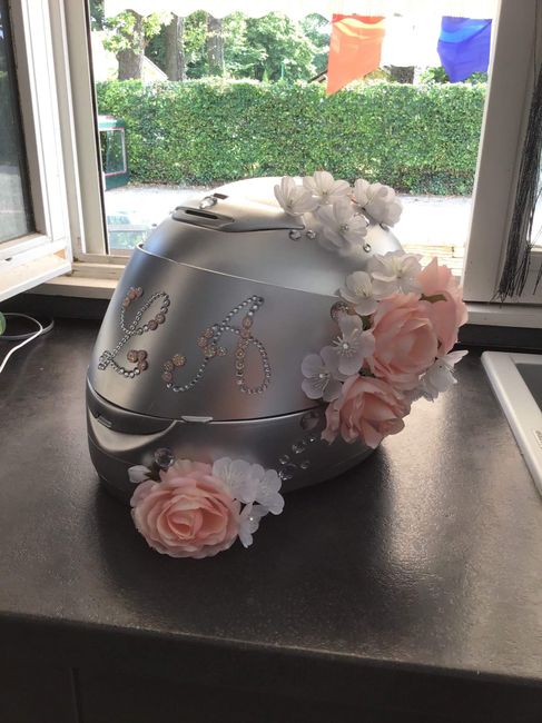 Évidemment quand j’ai enfin la possibilité d’etre Tranquille pour finir il me manque juste une rangée de strass pour finir mes lettres à coller sur la visière 😅 mais quand même contente de rendu final