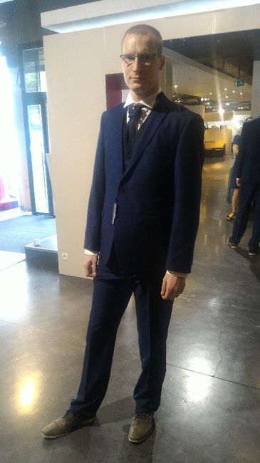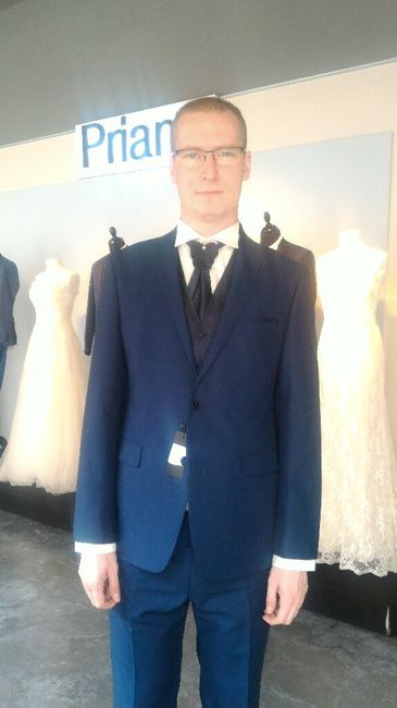 Il y a 1 semaines nous sommes allés dans la boutique ou j'ai acheté ma robe pour choisir son costume ! A notre grande surprise il nous on offert le gilet la chemise et la lavaliere et tout les retouches ! Il faut refaire tout le pantalon à sa...