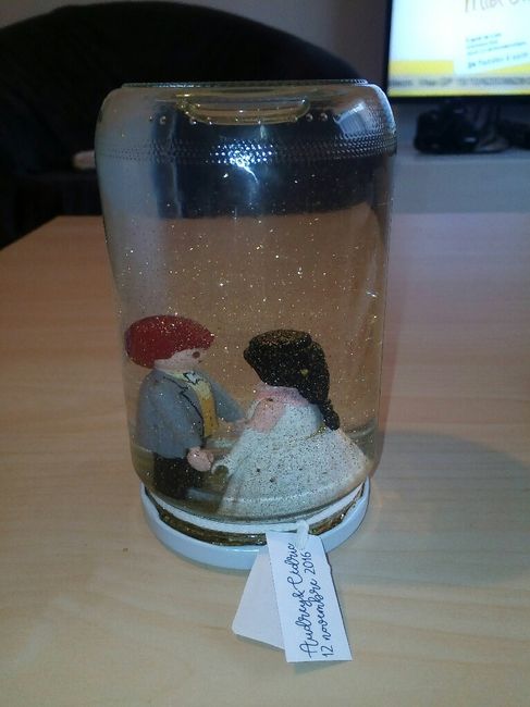 Lors de notre soirée de mariage, il y avais un petit sachet qui m'attendais sur ma chaise... Et j'en ai adoré contenu !! Ma soeur ma offert un joli présent que je vais garder précieusement et qui trône déjà dans notre salon !!!