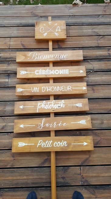 Hello tout le monde !! Après quelques heures de découpage, ponçage, lazurage , décalcage et peinturage au posta, voilà notre panneau directionnel quasiment fini !! Et une ligne de cocher sur ma liste des choses encore à faire Panneau directionnel ...