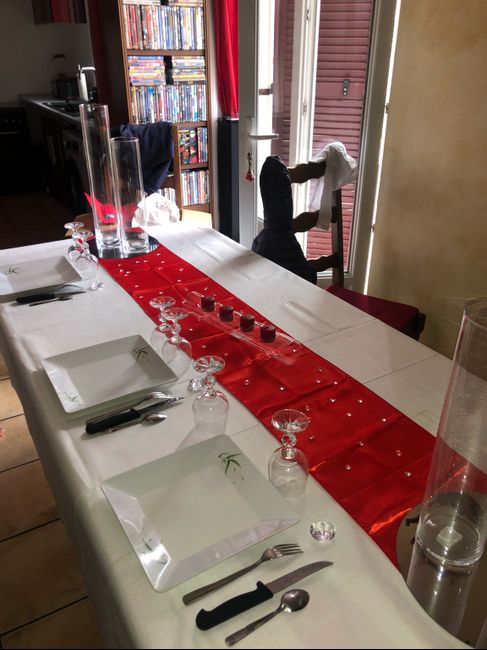 Coucou les filles, voilà je post aujourd’hui car j’ai fais des essais pour la table d’honneur et j’hesite entre deux chemin couleurs de chemin de table.. Sachant que nos couleurs c’est blanc et rouge à la base. Dans mon entourage c’est assez mitigé.....