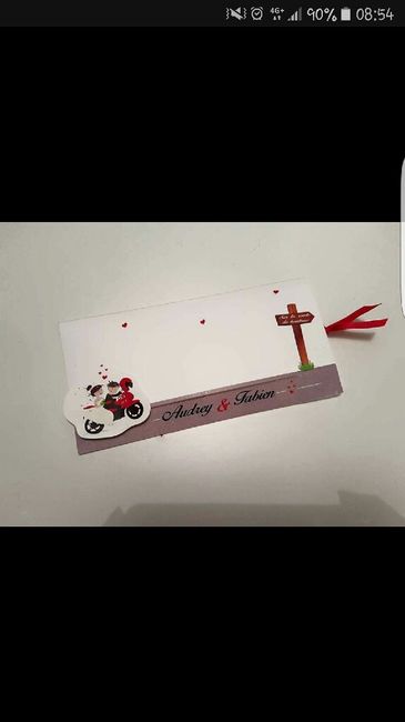 Voici nos faire part je suis super heureuse du rendu j ai eu les faire parts dont je rever Une amie nous a dessiner les personnages avec la moto