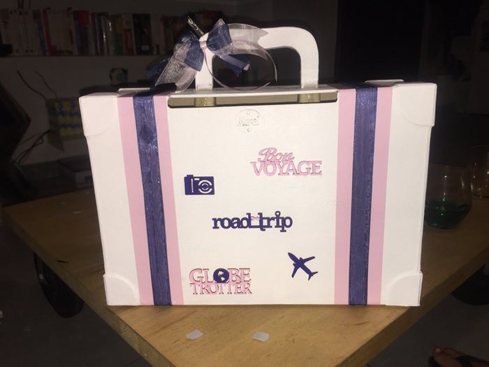 Bonjour tout le monde ! 🌎 Voilà mes petites valises en décoration de table, sur le theme du voyage vous l'aurez compris ... nos couleurs sont rose pâle, bleu marine et blanc ... qu en pensez vous ??