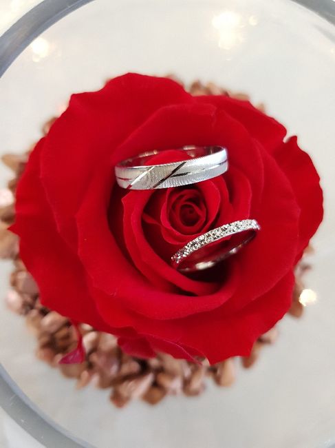 Voici quelques éléments de décoration de notre mariage dans 3 jours . Notre porte alliance ou il y aura une rose Et nos alliance juste posé. Se sera un sticker en lettrage blanc et non le papier ^^ Ensuite nos petites fioles avec rose pamp pour les...