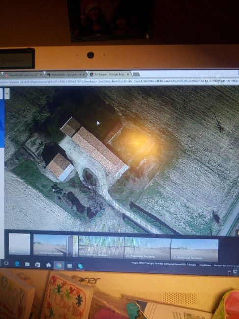 Voilà la vu part satellite de mon lieu de réception . Le repas se fera soit sous le hangar soit la ou y a la flèche... 3 hectare de terrain