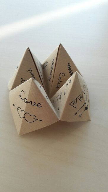Ca y est nous avons reçu nos menus, il ne manque plus qu'à les mettre en place la veille du mariage. Nous avons fait des cocottes en papiers :-) il y en aura 3 par tables. Vous avez prévu quoi pour vos menus ?