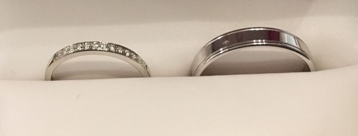 Et voilà , hier nous avons reçu le texto tant attendu, pour nous dire que nos alliances étaient arrivées!Chéri est passé les chercher. On est trop content.Je les adore ! Maintenant il faut attendre le 29 juillet pour pouvoir les porter !