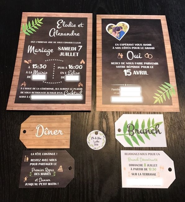 Coucou ! J'ai enfin la joie de vous présenter mes précieux faire-part qui partiront dès demain. Créa maison à partir de plusieurs inspirations pinterest et adapté aux thématiques de notre mariage : bois, ardoise, couleurs blanc, vert et pêche. Hâte...