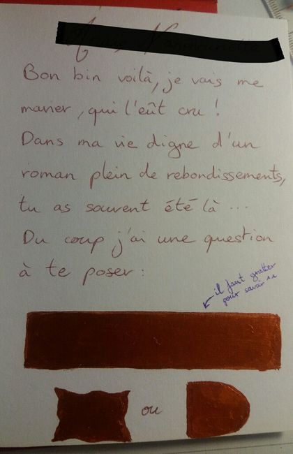 Voilà mon 1er témoin est mon frère mais le 2eme je voulais demander à ma meilleure amie. Alors plutôt que de lui dire juste comme ça, vu que ça fait déjà 5 mois depuis mes fiançailles, je voulais lui faire une demande un peu plus originale mais pas...