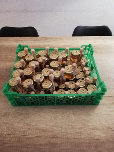 Coucou la communautĂ© đ comme le dis si bien le titre je voulais partager avec vous mon avancer du jour đđ Mes pots de miel pour les cadeaux des invitĂ©s j'ai justes mis les Ă©tiquettes mais c'est dĂ©jĂ sa de faitđđ il restera plus qu'Ă rajouter le miel...