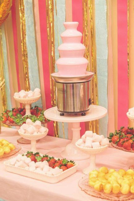 Coucou la communauté! Qui parmi vous a prévu de mettre une fontaine (de lait, de chocolat ou de fromage) à son mariage? j'avoue que si javais fait un candy bar, pourquoi pas une fontaine de chocolat, avec des fruits rouge!! miaaaam!! fontaine...