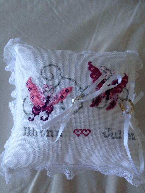 Bonjour à tous! J'aimerais savoir si vous avez prévu d'acheter ou de faire un coussin pour vos alliances? Nous avons demandé à la sœur de mon conjoint de nous en faire un, car elle est très douée pour les travaux manuels (ce sera du point de croix,...