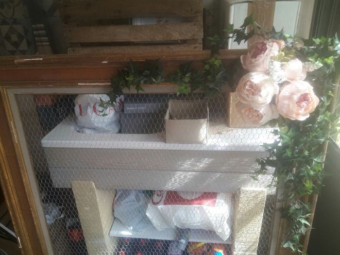 Voici aujourd'hui reste à finir la palette. ..et j'ai fini avec maman les cadeaux invités et la chevalet plan de table il manquait le bas la semaine dernière. .allez on range les outils...
