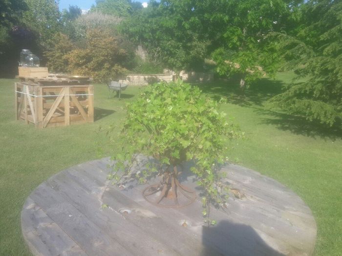 Merci à chéri nous avons été cherché des trucs pour le mariage et merci à bon coin. ..😉 2 énormes touret qui feront office de table pour le cocktail et un petit canapé pour le coin photos