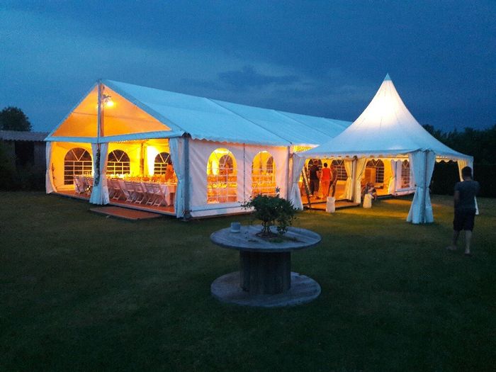 La salle De nuit À toutes les mariés du 03 juin je vous souhaite un joli Mariage et que le dieu de la meteo soit clément...voici quelques photos de la salle les extérieurs plus tard...Entrée fermée pour la pluie... La table La table Plafond Une...