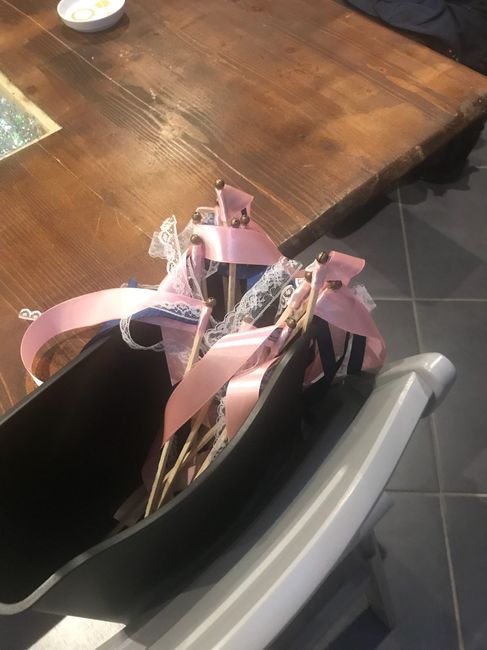 Coucou les filles, j’ai commencé ce soir les bâtons ruban qui serviront pour la sortie de l’église. Plusieurs essais pour trouver la bonne façon de faire. Mais plutôt contente du résultat, encore une quarantaine à faire.