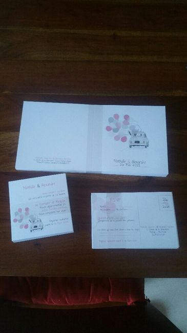 Avec une semaine de retard je vous partage nos faire part. Créé sur "Faire-part-créatif.Com". Faire part founie avec son enveloppe, sans oublier la carte réponse également fournie avec son enveloppe et l'invitation au diner. Très content du résultat....