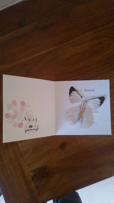 Une petite surprise attend nos invités à la réception de nos faire parts. Des papillons magique se sont invités à l'envoi de nos faire parts. Surprise assuré..