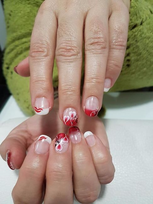 Bonjour les filles, Mon thème porte sur les couleurs rouge blanc et argenté. J'aurai des chaussures rouge, mon bouquet aura un peu de rouge et mes bijoux aussi. Je souhaite une french manucure, mais avec un petit (léger) côté original mais je n'ai...