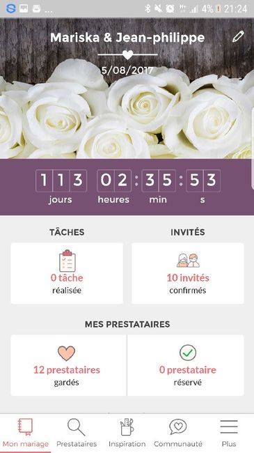 Les jours passent tellement vite j'ai peur de ne pas avoir le temps de tout faire toujours pas de salle de réception