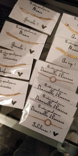 Coucou ! Voici ma petite réalisation du soir, j'ai commandé des bracelets que je vais offrir à mes demoiselles d'honneur, ma maman et ma belle-maman, ma mamie et ma belle-maman, et mes taties : en gros les femmes de nos familles ! Ce sont des...