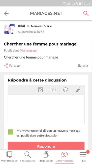 J’ai téléchargé une photo dans le post de Aimée