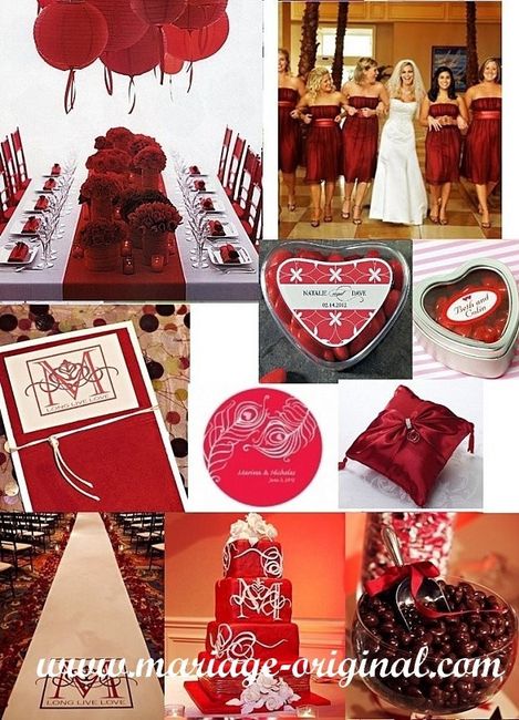 bonjour everybody je me marie le 16 Juin et pour les couleurs on serait bien tentés par blanc et rouge . alors je voudrais savoir si vous avez fait dans ces couleurs-là et si vous avez des photos parce que monsieur voudrait voir ce que ça pourrait...