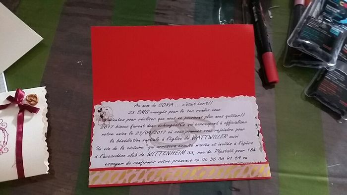 Coucou à tous comme le titre le dis enfin je peu envoyer mes faire part enfin. Merci à l'église pour tout ce retard.Voilà ce que sa donne vous en pensez quoi? Perso sa ne rentre pas dans les enveloppe correctement et moi qui suit si poitulleuse j'en...