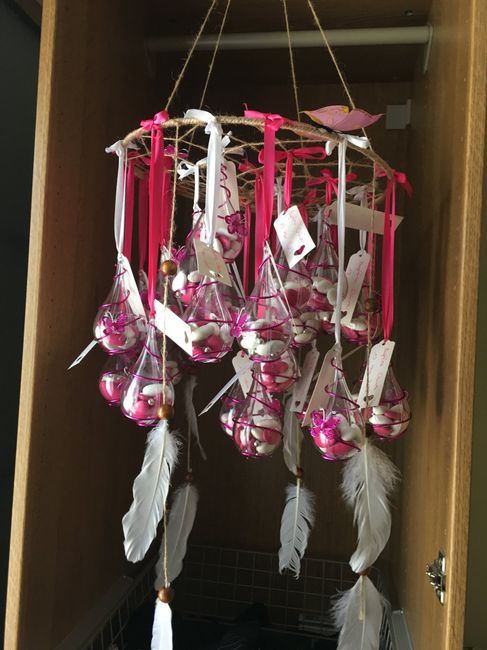 AidĂ©e par la belle sĆur de ma fille mes 40 contenants Ă dragĂ©es sont fait. Jâai fais un test sur mon support attrape rĂȘves que jâai allĂ©gĂ© de plumes et pampiles. La jâai pas mis toutes les gouttes et je les ai attachĂ© Ă lâarrache pour voir...